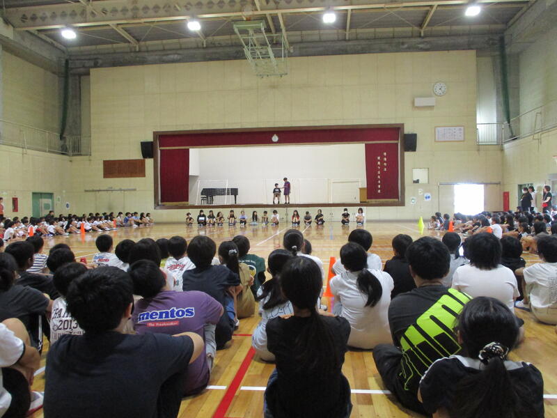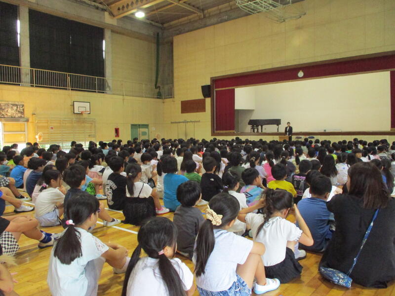 2月25日(火)に、菊陽町図書館ホールの事業である、演奏家派遣アウトリーチ事業が行われました。ピアニスト山本亜矢子さんをお招きし、6年生を対象にアクティビティが行われました。まずはピアノという楽器についての解説がありました。普段、子どもたちは音楽室や体育館でピアノを目にしているのですが、今回はピアノの構造や音響の工夫など、今まで知らなかったピアノの一面を知り、驚いていました。演奏では、ただ聴くのではなく、題名を想像しながら聴いたり、演奏者の表現を目の当たりにしながら聴いたりと、一流の音楽を全身で感じながら味わうことができました。「あまり知らなかったけど、ピアノに興味が湧いた。」「音楽は素晴らしいものだと感じた。」などの感想があり、子どもたちにとって貴重な経験になったようです。