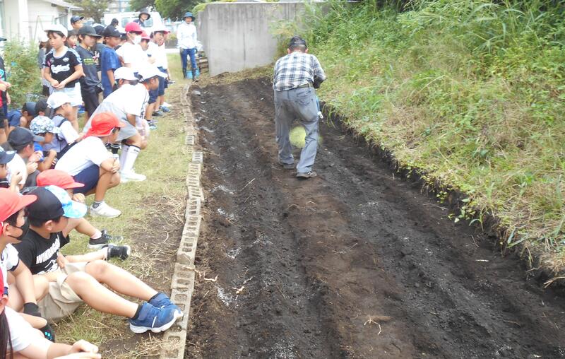 畑には、「紅はるか」、「安納いも」、「むらさきいも」という3種類が作られています。中でも「紅はるか」の人気が高いそうです。さつまいもは寒さに弱いため、収穫後、貯蔵庫に2週間ほど保管して出荷されます。9月から収穫が4カ月程続き、約3800㎏も収穫されるそうです。今日の給食には「だいがくいも」として使われており、甘くてとてもおしかったです。