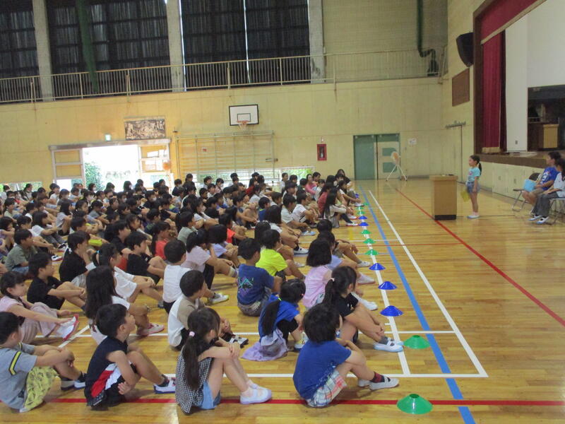 世界で活躍する選手たちがプレイする姿を間近で見ることができ、子ども達はとても喜んでいました。とても迫力があり、日本の選手のスマッシュが決まると、みんなで盛り上がり、一生懸命応援していました。学校に帰ってきてから、体育の授業で自分たちでもバドミントンをしてみました。持ち帰ってきたイメージをもとに、上手にプレイする姿が見られました。みんなで楽しむことができました。