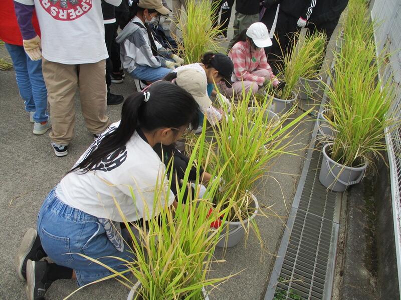 これまでの活動を通して、食料生産に携わる方々の思いや苦労を身をもって体験することができました。収穫した稲は、乾燥させ、脱穀、籾摺り、精米をした後、学習の中で炊飯し、食べる予定です。しっかりと収穫の秋を味わってほしいと思います。