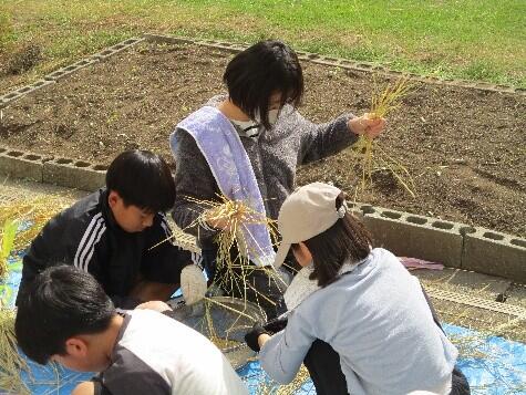 子どもたちは「意外と大変です。」や「昔の人すごいな。」と言いながら一生懸命に作業していました。自分たちの手で育てたお米をとる表情はとても輝いていました。普段食べているお米が様々な手間をかけて作られていることを感じ、一粒も残すことなく感謝して食べたいという感想もありました。今回脱穀した米は、精米機でもみすり・精米をした後、学習の中で炊いて食べる予定です。