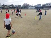 体の動かし方やドリブル、シュートを練習し、ミニゲームではみんなで元気いっぱいボールを追いかけていました。授業後には「楽しかった!」「またやりたいです!」と、喜んでいました。