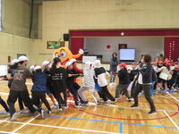 11月30日(土)に、6年生の学年レクリエーションが行われました。その名も「家族がやりたかった運動会」ということで、体育館で親子で体を動かすイベントを行いました。準備運動はもちろん「キャロッピー体操」です。なんとスペシャルゲストにキャロッピーくんが登場してくれました。その後、技巧走、綱引き、玉入れ、長縄などの競技があり、子どもたちは親との対決を笑顔で楽しんでいました。保護者の方も、まだまだ子どもには負けまいと、全力で競技にのぞんでいました。今の6年生は低、中学年時がコロナ禍と重なり、様々な制限のある中で学校生活を送ってきました。それでも互いに協力し、たくさんの人に支えられ、今では最上級生として立派に学校を引っ張る存在へと成長してくれました。卒業まで残り約4か月となりました。今回の学年レクリエーションのように、残りの小学校生活でたくさんの思い出を作ってほしいと思います。