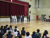3月11日(火)に、3月のスマイル集会が行われました。まずは表彰があり、運営委員会のボランティア活動の取組が、菊池教育会から里仁賞の表彰を受けました。次に、9つの委員会から活動報告がありました。本年度の活動内容、成果と課題、次年度に向けて頑張ってほしいことなど、各委員会の委員長から報告がありました。武北っ子レクリエーションでは、「野菜スープじゃんけん」を行いました。全校児童の中から3人組を作り、グー(じゃがいも)、チョキ(にんじん)、パー(タマネギ)の3つが分かれて出るまで、3人でじゃんけんをします。1回で出揃う組もあれば、何回チャレンジしても揃わない組もあり、みんなで楽しみながら交流を深めることができました。本年度最後のスマイル集会でしたが、スマイル集会の取り組みを通して子どもたちの自発的・自治的な活動の高まりが見られました。