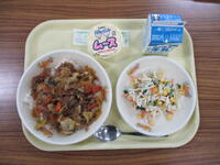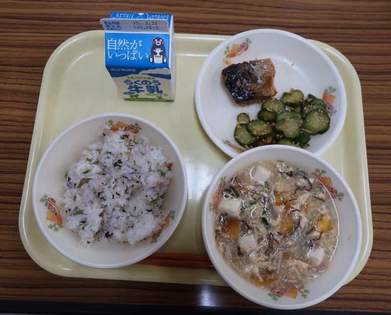 今日は、菊陽北小校区でとれたきゅうりがでました。