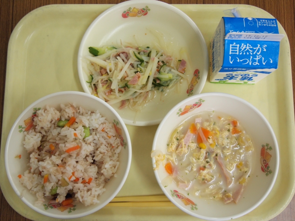 タコとセロリのカミカミチャーハン・牛乳・中華風コーンスープ