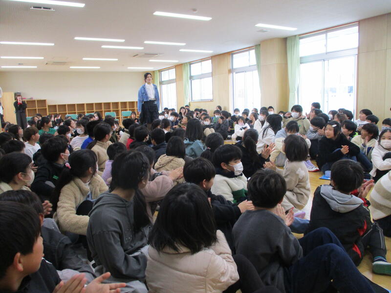 熊本出身で世界的にモデルとして活躍されている松村佳奈さんにゲストティーチャーとして来校いただきました。ファッションショーのように子どもたちの列の間から登場いただき、大きな拍手でお迎えしました。