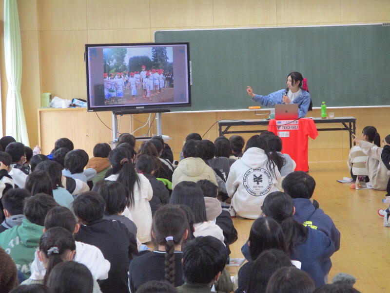 モデルとして活躍されるまでの道のりや旅行が趣味ということで、世界のいろいろな国を訪れた経験から分かった文化の違い・日本のよさについて写真を交えて子どもたちにお話しいただきました。