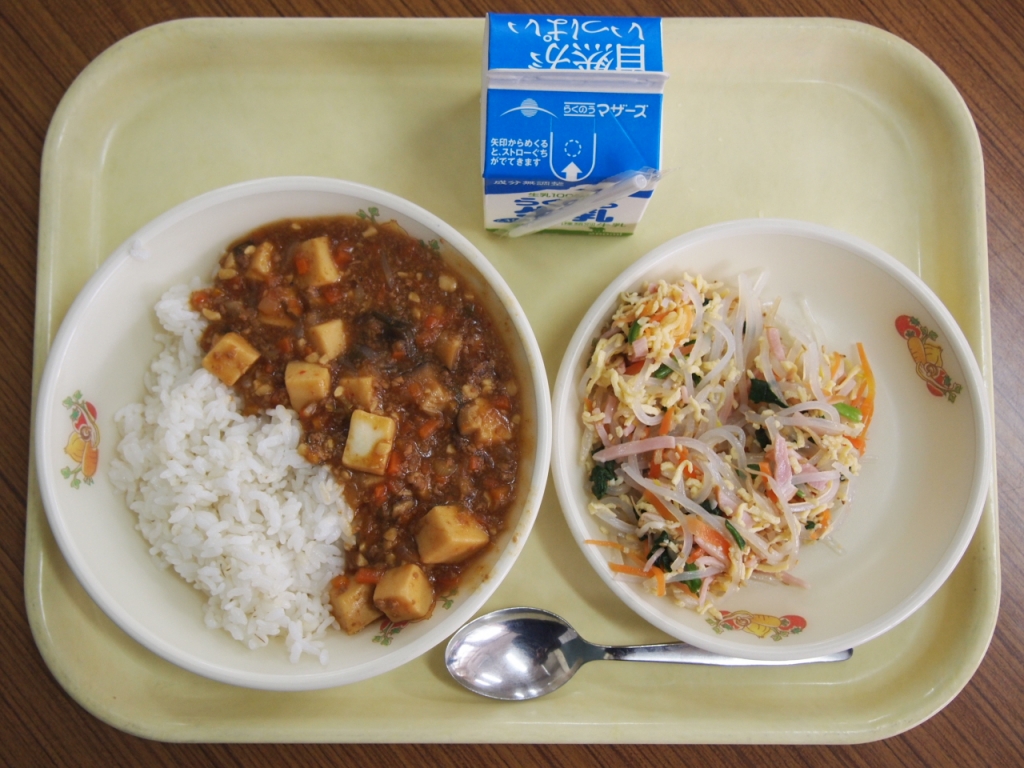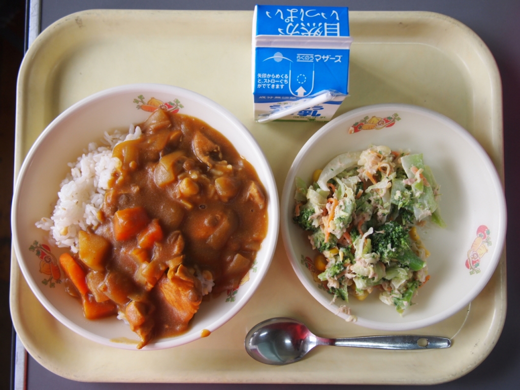 ごこくご飯・牛乳・チキンカレー・ブロッコリーサラダ