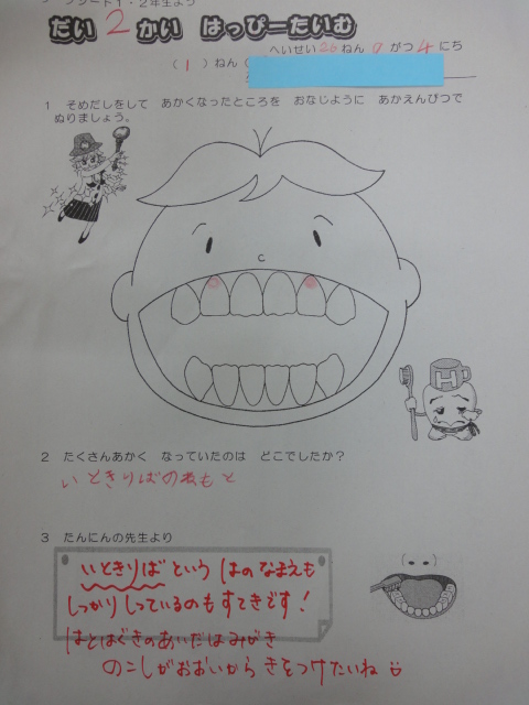 9/4(木)の低学年は、歯垢の染め出しでした。