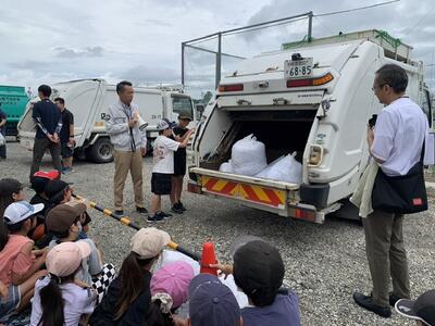 7月16日(火)に、熊本県産業資源循環協会の方々をお招きし、4年生の環境学習を行いました。熊本県や菊陽町のゴミの現状を学んだ後、ゴミの分別体験活動を行い、分別したものがどのように処理され、リサイクルされるかを学びました。その後、実物のパッカー車を見学し、ゴミの投げ入れ体験を行いました。最後に環境のために自分が出来ることをまとめ、学級ごとに「約束の木」を作成しました。ゴミという身近なものから、環境について考えることができました。今後の生活にぜひ生かしてほしいと思います。