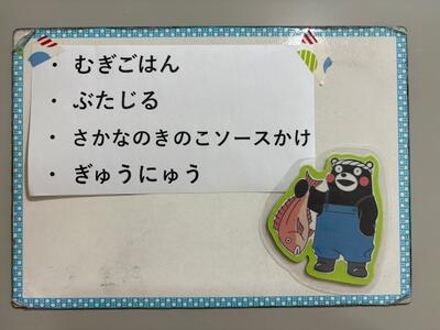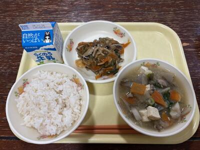 今日の献立は、「麦ごはん・豚汁・魚のきのこソースかけ・牛乳」です。豚汁には豚肉以外にもたくさんの野菜が具材で入っていて、食べ応え抜群でした。魚のきのこソースかけの「きのこソース」は、きのこが美味しく味付けしてあり、魚にぴったりで、ちょっと贅沢な気分になる献立でした。暦の上では、季節は「冬」ですが、今日の日中は半袖でも過ごせそうな陽気でした。そんな中で栄養満点の献立で、元気をいただきました。今日も美味しい給食、ごちそうさまでした。