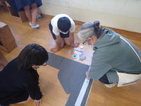 タイムリーに、次の家庭科の時間は、地域のボランティアの方が来てくださり、ミシン縫いの補助をしていただきました。