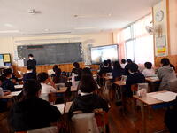 6年生の教室では、漢字・計算大会に真剣に取り組む姿がありました。