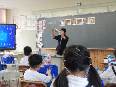 夏休みが終了し久しぶりに子どもたちの姿を見ると、とても大きくなったように感じます。今日は、3年生が身体測定を行っていました。その前に、養護教諭の平木先生から、大切な歯を守るためのお話。