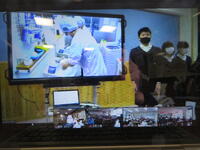 次に給食委員会の児童が、給食室で働く先生方の仕事の様子を動画を使って紹介しました。なかなか見ることができない給食室の中の様子が分かり、子どもたちも興味深い眼差して画面を見ていました。