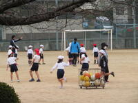 運動場では2年生が体育の時間、元気いっぱいボールけり遊びを行っていました。