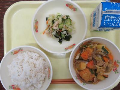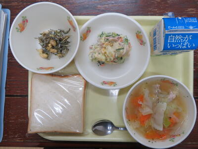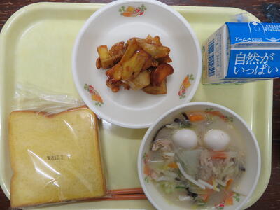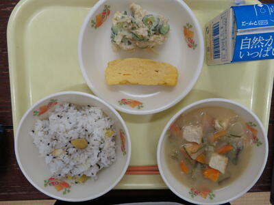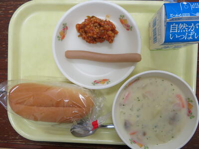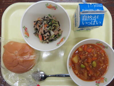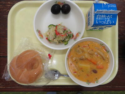 今日の献立は、「ひのくにパン、ビーフシチュー、ビーンズサラダ、牛乳」です。ビーフシチューは、丁寧に煮込んだお肉や野菜の深い旨味を感じるビーフシチューです。お肉は2時間以上煮込んであるとのことで、柔らかい美味しいお肉をいただきました。ビーンズサラダは、いろいろなお豆の食感を楽しみながら、食べ応えありのサラダでした。給食の先生方の愛情いっぱいの給食をいただきました。今週もおいしい給食ありがとうございました。