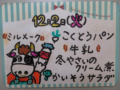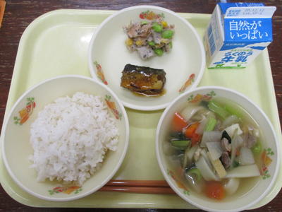 今日の献立は、「ひのくにパン、ビーフシチュー、ビーンズサラダ、牛乳」です。ビーフシチューは、丁寧に煮込んだお肉や野菜の深い旨味を感じるビーフシチューです。お肉は2時間以上煮込んであるとのことで、柔らかい美味しいお肉をいただきました。ビーンズサラダは、いろいろなお豆の食感を楽しみながら、食べ応えありのサラダでした。給食の先生方の愛情いっぱいの給食をいただきました。今週もおいしい給食ありがとうございました。