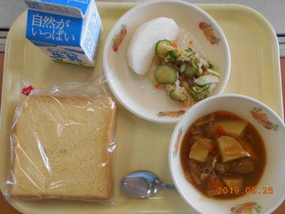 今日の献立は、「ひのくにパン、ビーフシチュー、ビーンズサラダ、牛乳」です。ビーフシチューは、丁寧に煮込んだお肉や野菜の深い旨味を感じるビーフシチューです。お肉は2時間以上煮込んであるとのことで、柔らかい美味しいお肉をいただきました。ビーンズサラダは、いろいろなお豆の食感を楽しみながら、食べ応えありのサラダでした。給食の先生方の愛情いっぱいの給食をいただきました。今週もおいしい給食ありがとうございました。
