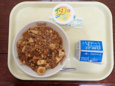 マーボー丼、レモンゼリー、牛乳