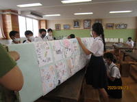 また、5年2組の教室では、教育実習生の先生のお別れ会で寄せ書きのプレゼントがあっていました。
