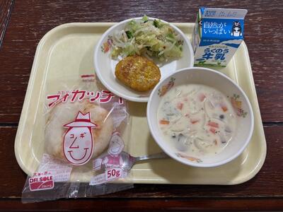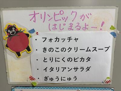 今日の献立は、「フォカッチャ・きのこのクリームスープ・鶏肉のピカタ・イタリアンサラダ・牛乳」です。今日から「ミラノ・コルティナ冬季オリンピック2026」が開幕することにちなみ、開催国イタリアに関係する献立です。フォカッチャは、イタリアで食される平たいパンです。ピカタとは、イタリア料理のひとつで、イタリアでは肉や魚を卵と小麦粉で衣を付けて焼いた料理だそうです。今日は、鶏肉が使われた献立でした。オリンピックでの日本選手の活躍を教室から願いながら食べたことでしょう。今日もおいしい給食をありがとうございました。今週もごちそうさまでした!