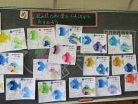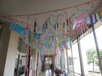 6年生教室前の子どもたちの作品が涼しげで素敵です。