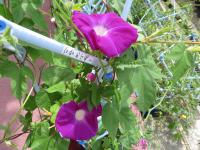 1年生の教室横ベランダには、子どもたちが育てている朝顔が毎朝が咲いています。
