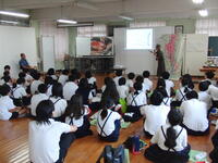 授業の様子を見て回っていると、1年生の教室では、間近に迫った見学旅行に向けての事前指導が行われていました。熊本動植物園に出かける予定ですが、施設内で注意することやバスの乗り方、グループで乗る遊具についてなど、担任の説明をしっかり聞いていました。話を聞いている表情が生き生きしていて、見学旅行を楽しみにしていることがよく伝わってきました。新たに配られた資料をしおりに貼ったりする作業も頑張っていました。先生の話をよく聞き、ルールをしっかり守りながら、楽しみながらたくさんのことを学んできてほしいと思います。