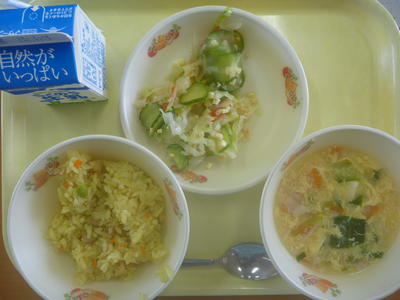 カレーピラフ・コーンとたまごのスープ・イタリアンサラダ