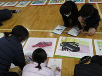 今日は5年生の子どもたちが、図工の時間、鑑賞を行っていました。好きな作品を2つ選んで、感想を書いています。