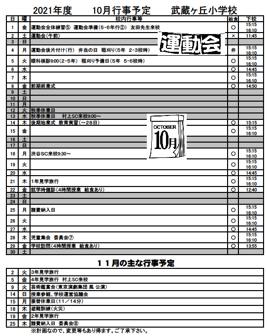 年間・月ごとの行事予定です。クリックすると、PDFデータが開きます。変更の場合は、学校だより・学級だより等でお知らせしますので、ご了承ください。