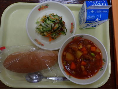 かぼちゃパン・ズッキーニのカレースープ・ツナとだいずのサラダ・なし