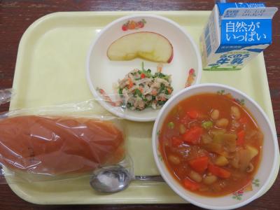 今日の献立は、「麦ご飯、マーボー春雨、海藻サラダ、牛乳」です。マーボー春雨は、旨味をたっぷり吸った春雨やたけのこ等の具材の味がよく、ご飯がすすみます。海藻サラダは、ちりめんやわかめが、口の中で、時間差でそれぞれの食感を感じ、味よく沢山いただきました。今日もおいしい給食ありがとうございました。