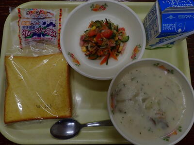 今日の献立は、「ひのくにパン、ビーフシチュー、ビーンズサラダ、牛乳」です。ビーフシチューは、丁寧に煮込んだお肉や野菜の深い旨味を感じるビーフシチューです。お肉は2時間以上煮込んであるとのことで、柔らかい美味しいお肉をいただきました。ビーンズサラダは、いろいろなお豆の食感を楽しみながら、食べ応えありのサラダでした。給食の先生方の愛情いっぱいの給食をいただきました。今週もおいしい給食ありがとうございました。