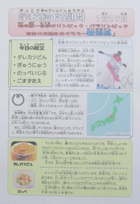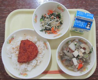 今日の献立は、「タレカツ丼、牛乳、のっぺい汁、ごま酢和え」です。今日は、新潟県です。名物料理「タレカツ丼」郷土料理「のっぺい汁」が登場です。タレカツ丼は、カツのさくさく感が気持ちよく、タレがご飯に染みていて美味しいです。のっぺい汁は、心も体も温まる優しい味わい、根菜の旨味も感じました。ごま酢和えは、ちりめんや具材の食感よく、ご飯ともあいます。今日もおいしい給食ありがとうございました。