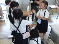 授業中の子どもたちの様子を見て回っていると、1年教室から歓声が聞こえたので、のぞいてみました。算数の「いろいろなかたち」の学習で、いろいろな形の空き箱を使った高さ比べの学習活動が行われていました。子どもたちなりに形を組み合わせながら、楽しそうに学習していました。一人の子が、「重い箱を下にすると、高く積んだときに崩れない。」という発見を発表し、その意見を生かしながら箱を組み直していました。子どもたちの笑顔が光る学習でした。
