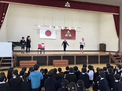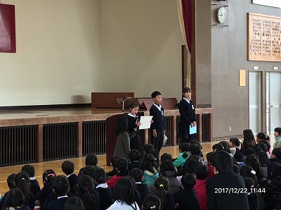 校長先生のお話や児童代表発表、そして冬休みのくらしについてのお話を聞きました。