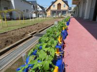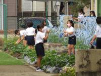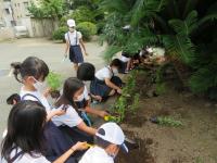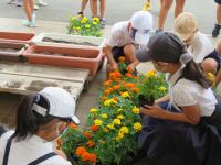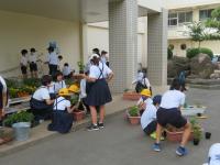 低学年棟のベランダや花壇は、1,2年生が花や野菜のお世話で朝からにぎやかです。
