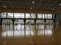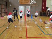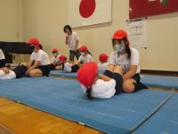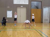 体育館では、5年生と2年生がペアを組んでシャトルランを行っていました。