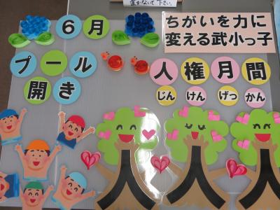 また、職員室にはとても可愛らしい6月の掲示物が出来上がっていました。