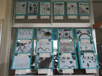 6年生教室前の子どもたちの作品が涼しげで素敵です。