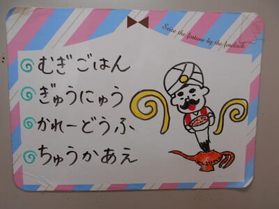今日の献立は、「麦ご飯・カレーどうふ・中華あえ」です。カレーどうふは、マーボーどうふのカレー味です。給食の先生のお話によると、とうふ料理もしっかり食べてもらおうと考えられたメニューだそうです。ご飯がぐんぐん進む美味しい献立で、このブログを書いている、普段はあまり料理しない教頭も、「家でも作ってみよーかなー。」と思ってしまう献立でした。今日もおいしい給食、ごちそうさまでした。