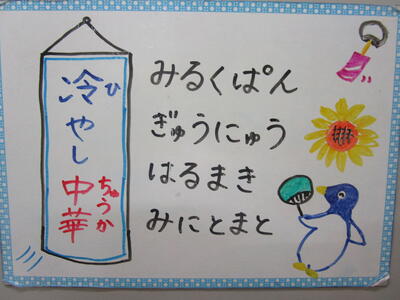 今日の献立は、「冷やし中華、ミルクパン、牛乳、はるまき、ミニトマト」です。冷やし中華は、きゅうり・ハム・人参・もやし等々の沢山の具材と麺、満足感たっぷりで、うまい。美味しくいただきました。はるまきは、大好物でうれしいです。ミルクパンと牛乳もいただきました。今日もおいしい給食ありがとうございました。