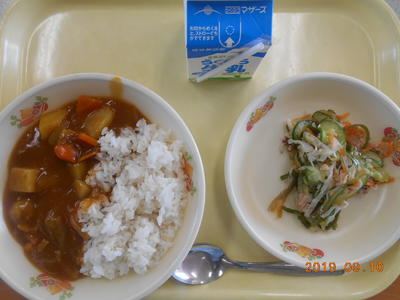 むぎごはん・ワンタンスープ・なつやさいのスーパイコー