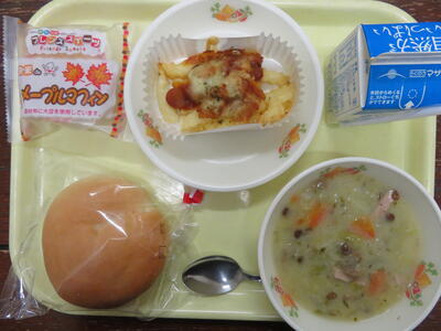 今日の献立は、「ひのくにパン、ビーフシチュー、ビーンズサラダ、牛乳」です。ビーフシチューは、丁寧に煮込んだお肉や野菜の深い旨味を感じるビーフシチューです。お肉は2時間以上煮込んであるとのことで、柔らかい美味しいお肉をいただきました。ビーンズサラダは、いろいろなお豆の食感を楽しみながら、食べ応えありのサラダでした。給食の先生方の愛情いっぱいの給食をいただきました。今週もおいしい給食ありがとうございました。