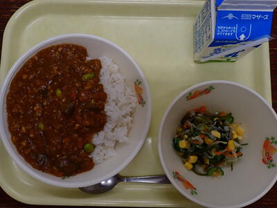 今日の献立は、「ひのくにパン、ビーフシチュー、ビーンズサラダ、牛乳」です。ビーフシチューは、丁寧に煮込んだお肉や野菜の深い旨味を感じるビーフシチューです。お肉は2時間以上煮込んであるとのことで、柔らかい美味しいお肉をいただきました。ビーンズサラダは、いろいろなお豆の食感を楽しみながら、食べ応えありのサラダでした。給食の先生方の愛情いっぱいの給食をいただきました。今週もおいしい給食ありがとうございました。