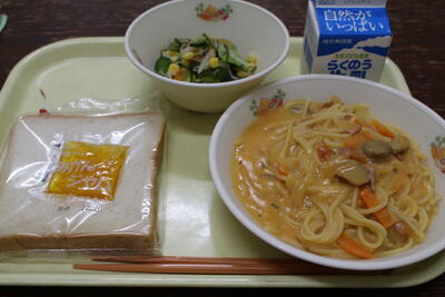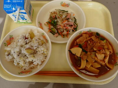 今日の献立は、「ひのくにパン、ビーフシチュー、ビーンズサラダ、牛乳」です。ビーフシチューは、丁寧に煮込んだお肉や野菜の深い旨味を感じるビーフシチューです。お肉は2時間以上煮込んであるとのことで、柔らかい美味しいお肉をいただきました。ビーンズサラダは、いろいろなお豆の食感を楽しみながら、食べ応えありのサラダでした。給食の先生方の愛情いっぱいの給食をいただきました。今週もおいしい給食ありがとうございました。