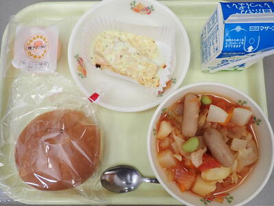 今日の献立は、「ひのくにパン、ビーフシチュー、ビーンズサラダ、牛乳」です。ビーフシチューは、丁寧に煮込んだお肉や野菜の深い旨味を感じるビーフシチューです。お肉は2時間以上煮込んであるとのことで、柔らかい美味しいお肉をいただきました。ビーンズサラダは、いろいろなお豆の食感を楽しみながら、食べ応えありのサラダでした。給食の先生方の愛情いっぱいの給食をいただきました。今週もおいしい給食ありがとうございました。